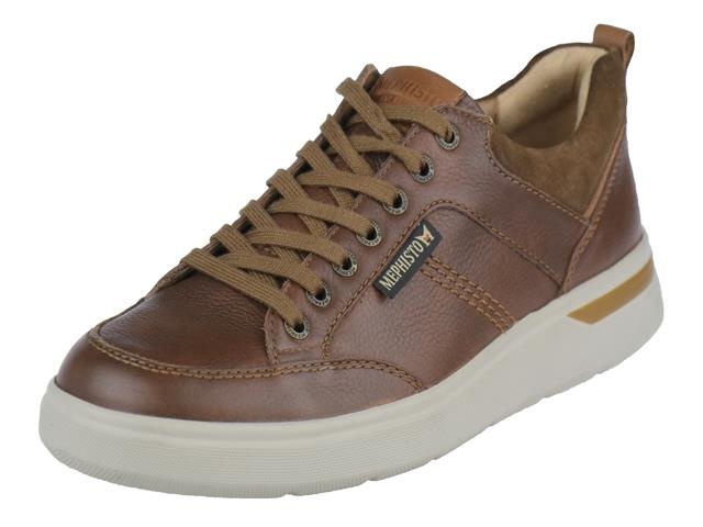 Mephisto sportieve en comfortabele heren veterschoen. Deze sneaker van Mephisto heeft als modelnaam Olivier en de kleur van de schoen is hazelnut oftewel bruin. Het materiaal is leer met een suede accent rondom de hiel. De voering is van leer met een leder uitneembaar voetbed. Deze schoen heeft een lichtgewicht kuipzool voor extra draaggemak.